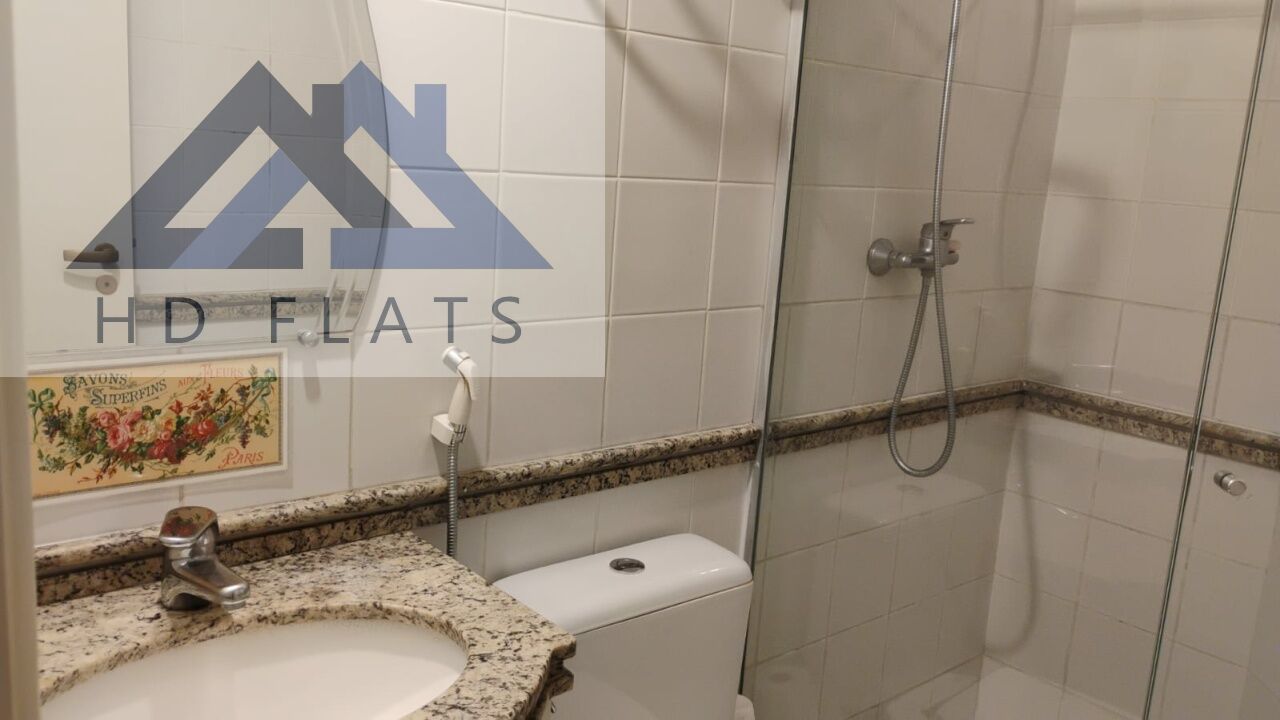 O Flat possui: salão de festas, home theater, sauna, piscina, bar inglês, sala de descanso e fitness.